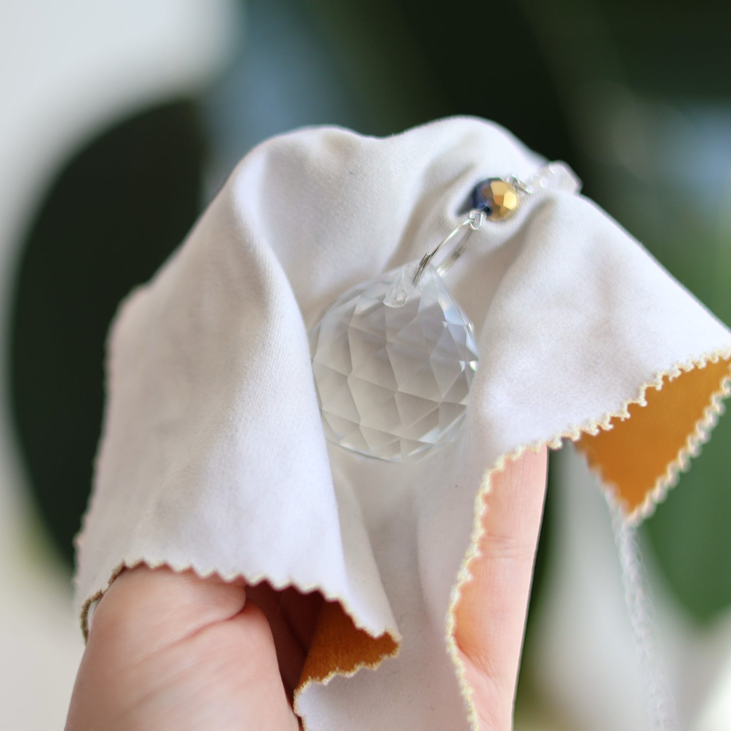 Hast du Fingerabdrücke an deinen Glaskristallen? Kein Problem! Mit einem weichen Microfasertuch, wie zum Beispiel einen Brillenputztuch und Fensterputztuch, kannst du diese ganz einfach von den Glaskristallen wegpolieren.