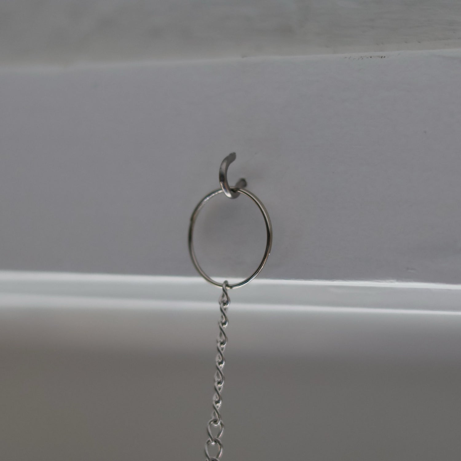 Durch den Befestigungsring, der wie der Ring eines Schlüsselanhängers funktioniert, kannst du deinen Sonnenfänger auch kürzen, falls er dir zu lang sein sollte. Dazu fädelst du einfach den Befestigungsring durch eines der Kettenglieder. So lässt sich der Sonnenfänger auch um eine Gardinenstange herum befestigen.