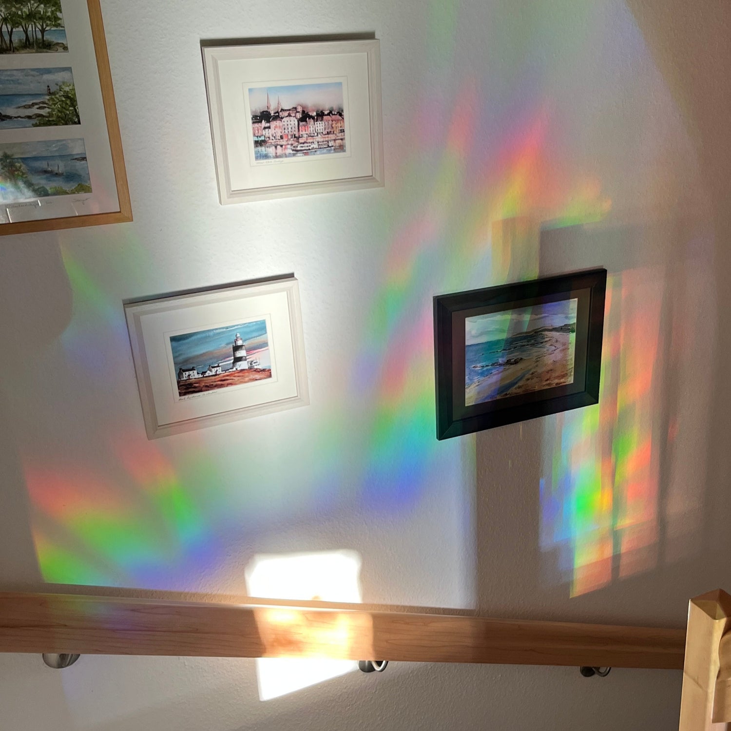 Die Sonnenfänger Sticker funktionieren nur an Fenstern, die direkten Sonnenschein abbekommen. Am besten geeignet sind als Südfenster, aber auch Ost- und Westfenster sind gut geeignet. Bei Sonnenauf- und untergang reichen die Regenbögen grundsätzlich weiter in den Raum rein als tagsüber.