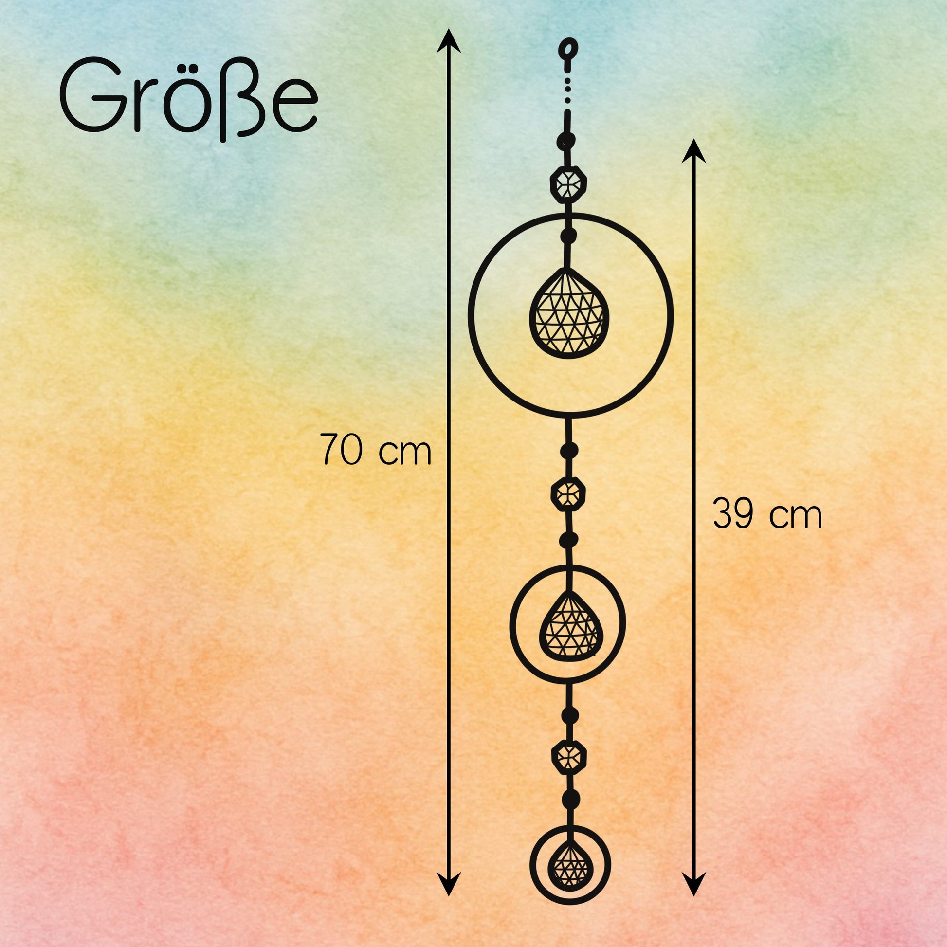 Das dekorative Element misst ca. 39 cm, die gesamte Länge inklusive Aufhängung liegt bei etwa 70 cm.