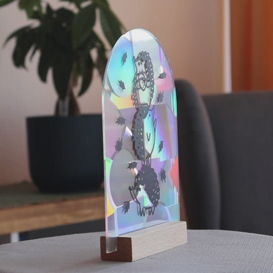 Diesen Sonnenfänger kannst du hinstellen, wo du möchtest. So lange er in direktem Sonnenlicht steht, zaubert er dir unglaublich intensive Regenbögen in dein Zuhause.