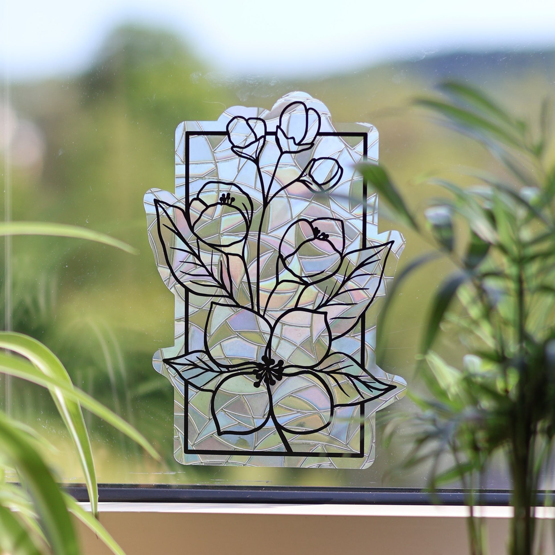 Die Basis des Stickers ist eine prismatische Fensterfolie, die für die tollen Lichtreflexe sorgt. Die Fensterfolie haftet statisch an deinem Fenster, du kannst sie also immer wieder neu positionieren und es bleiben keine Kleberückstände am Fenster zurück. Das Muster aus Vinylfolie sorgt gleichzeitig für eine tolle Dekoration an deinem Fenster.