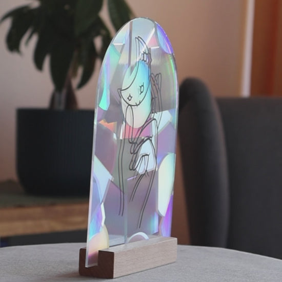 Diesen Sonnenfänger kannst du hinstellen, wo du möchtest. So lange er in direktem Sonnenlicht steht, zaubert er dir unglaublich intensive Regenbögen in dein Zuhause.