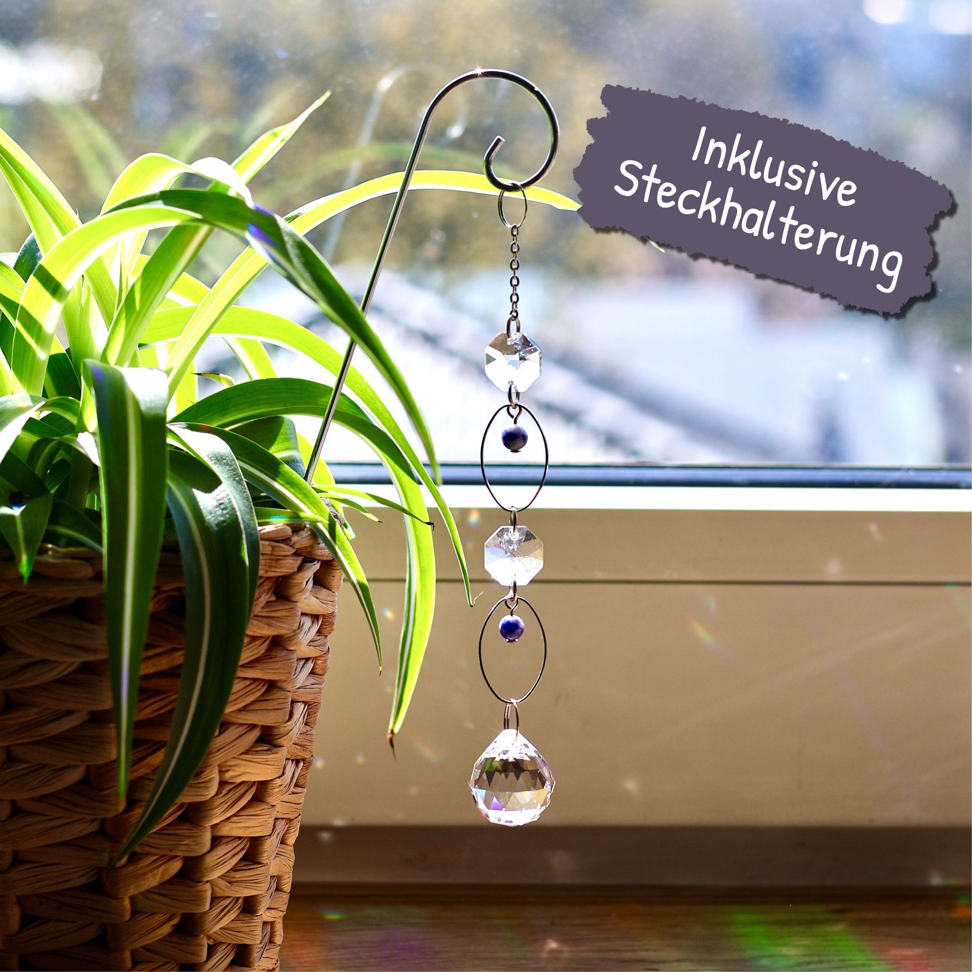 Bei jedem Sonnenstecker ist ein Pflanzenstecker aus Metall im Lieferumfang dabei, mit dem du den kleinen hängenden Sonnenfänger an deinem Pflanztopf befestigen kannst.