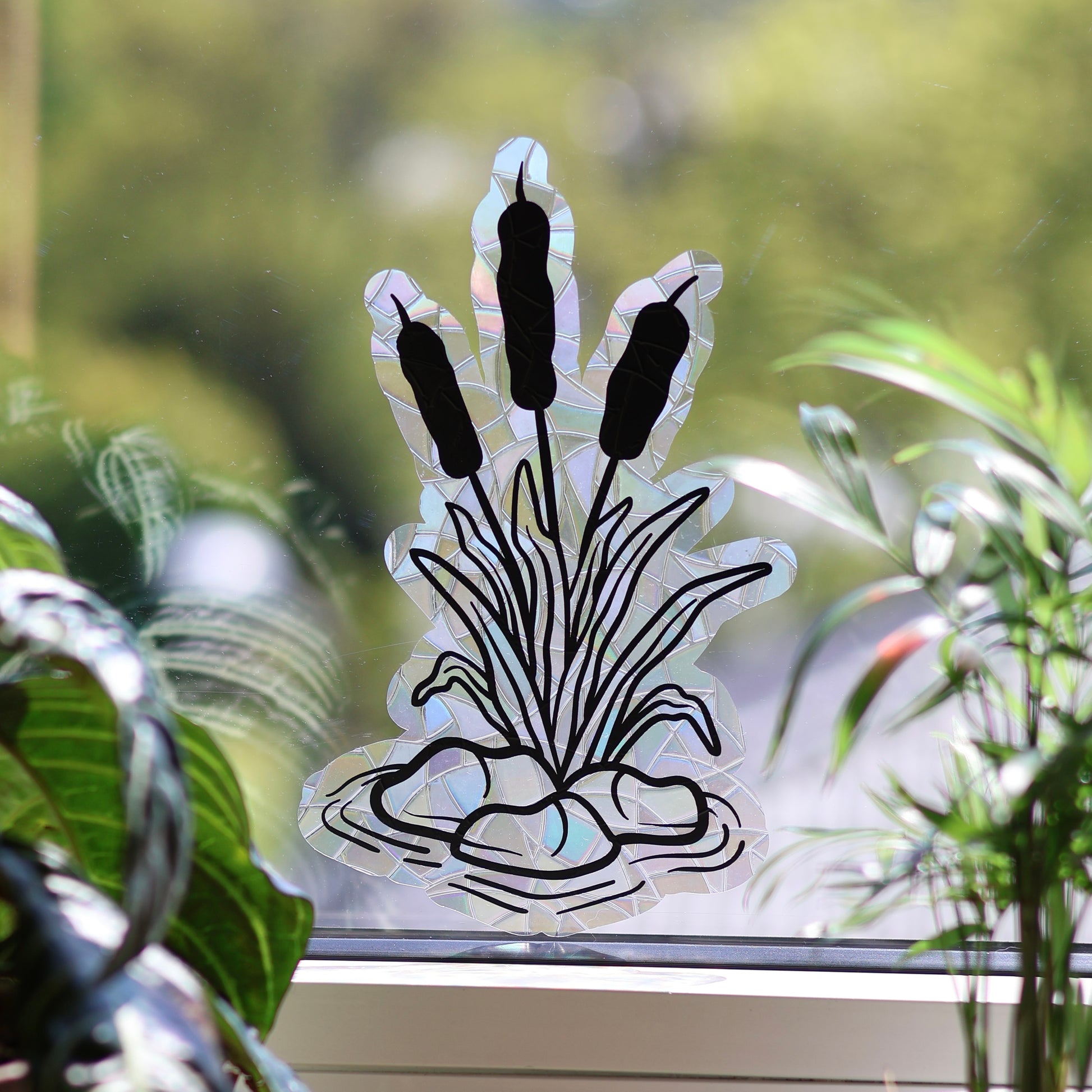 Keinen Platz für einen Teich? Kein Prolem! Mit diesem Sonnenfänger Sticker mit Rohrkolben Motiv holst du dir das Teichfeeling in dein Zuhause!