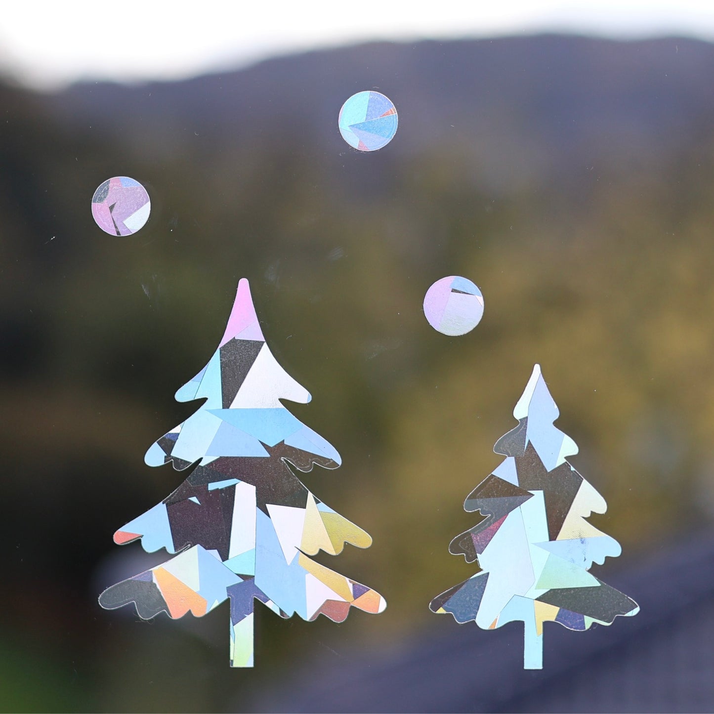 Hol dir dein tägliches Dopamin direkt ans Fenster mit diesem Set aus zwei Tannen und drei Kreis Sonnenfänger Stickern!