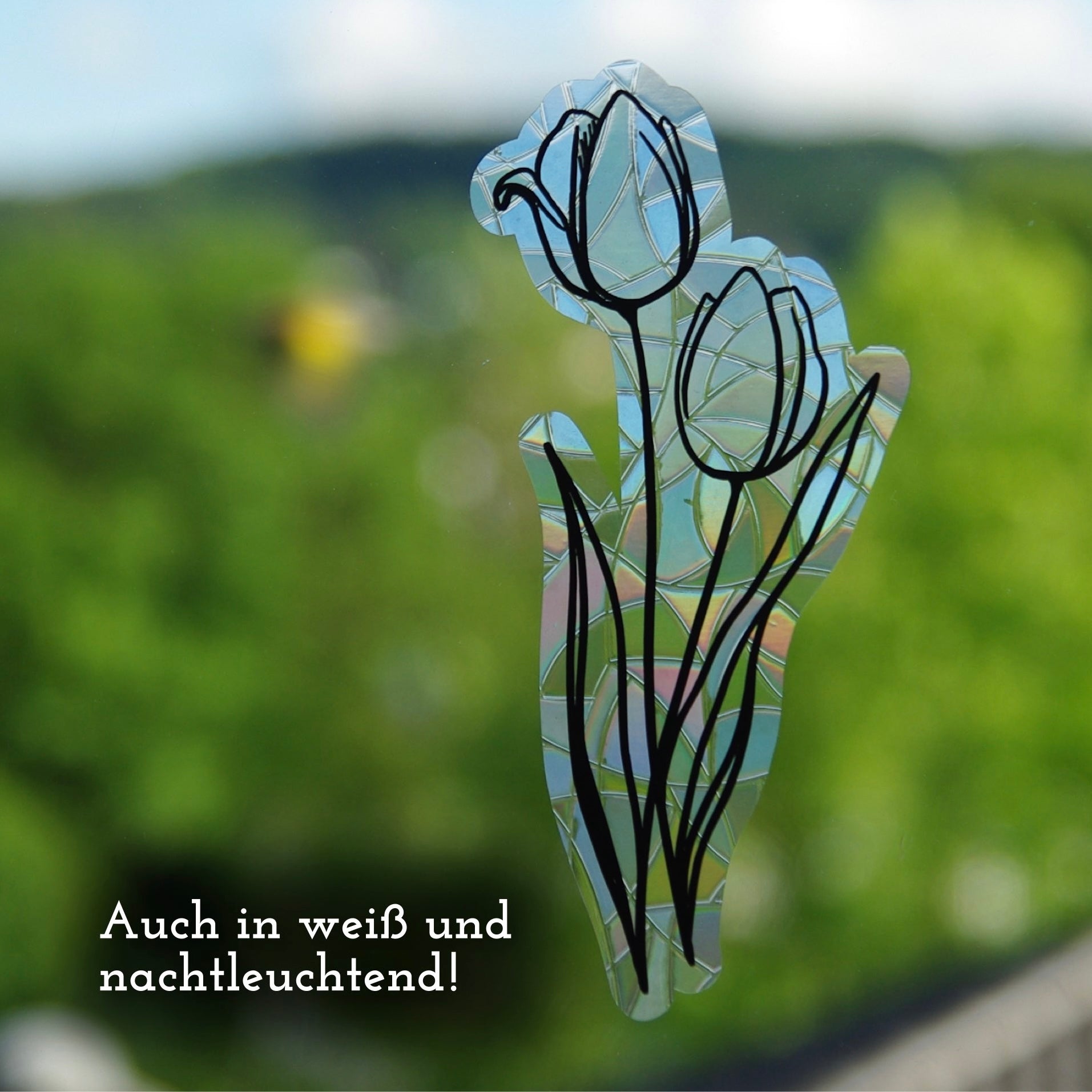 Der perfekte Sonnenfänger für jeden Pflanzenmenschen. Nutze auch den letzten Platz in deinem Zuhause für Blumen mit diesem süßen Sonnenfänger Sticker mit Tulpenmotiv.