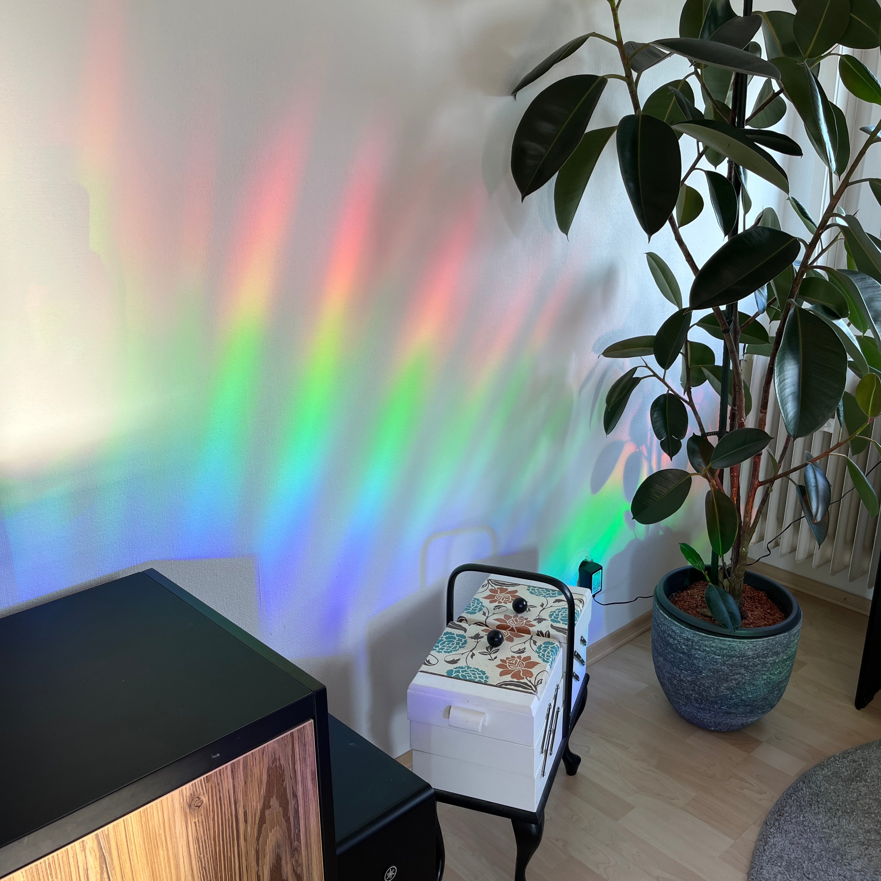 Diesen Sonnenfänger kannst du hinstellen, wo du möchtest. So lange er in direktem Sonnenlicht steht, zaubert er dir unglaublich intensive Regenbögen in dein Zuhause.